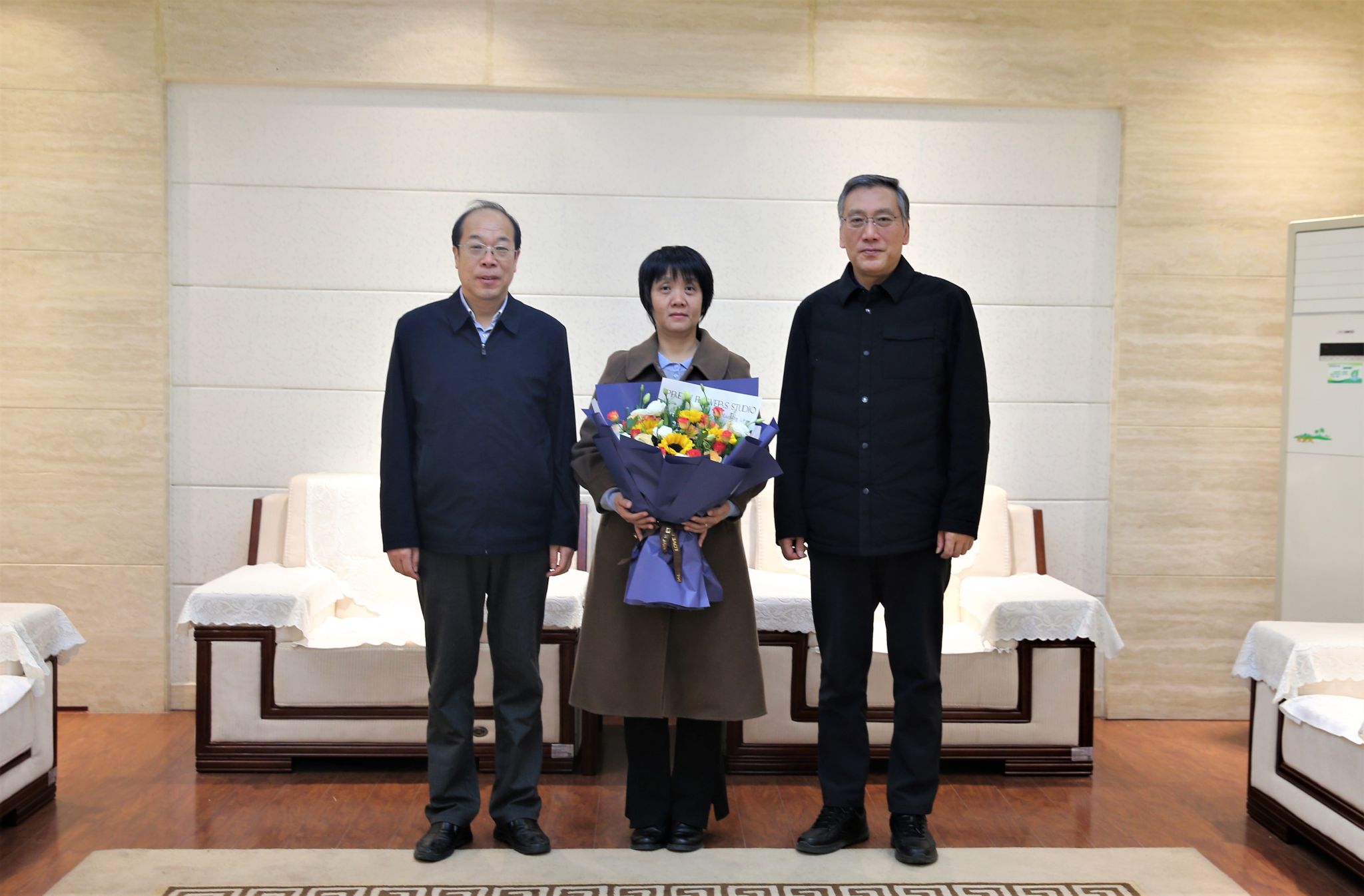 12月3日,党委书记韩明军、校长仲伟周会见陕西省第八届孝老爱亲道德模范、学校教师朱显鸽。