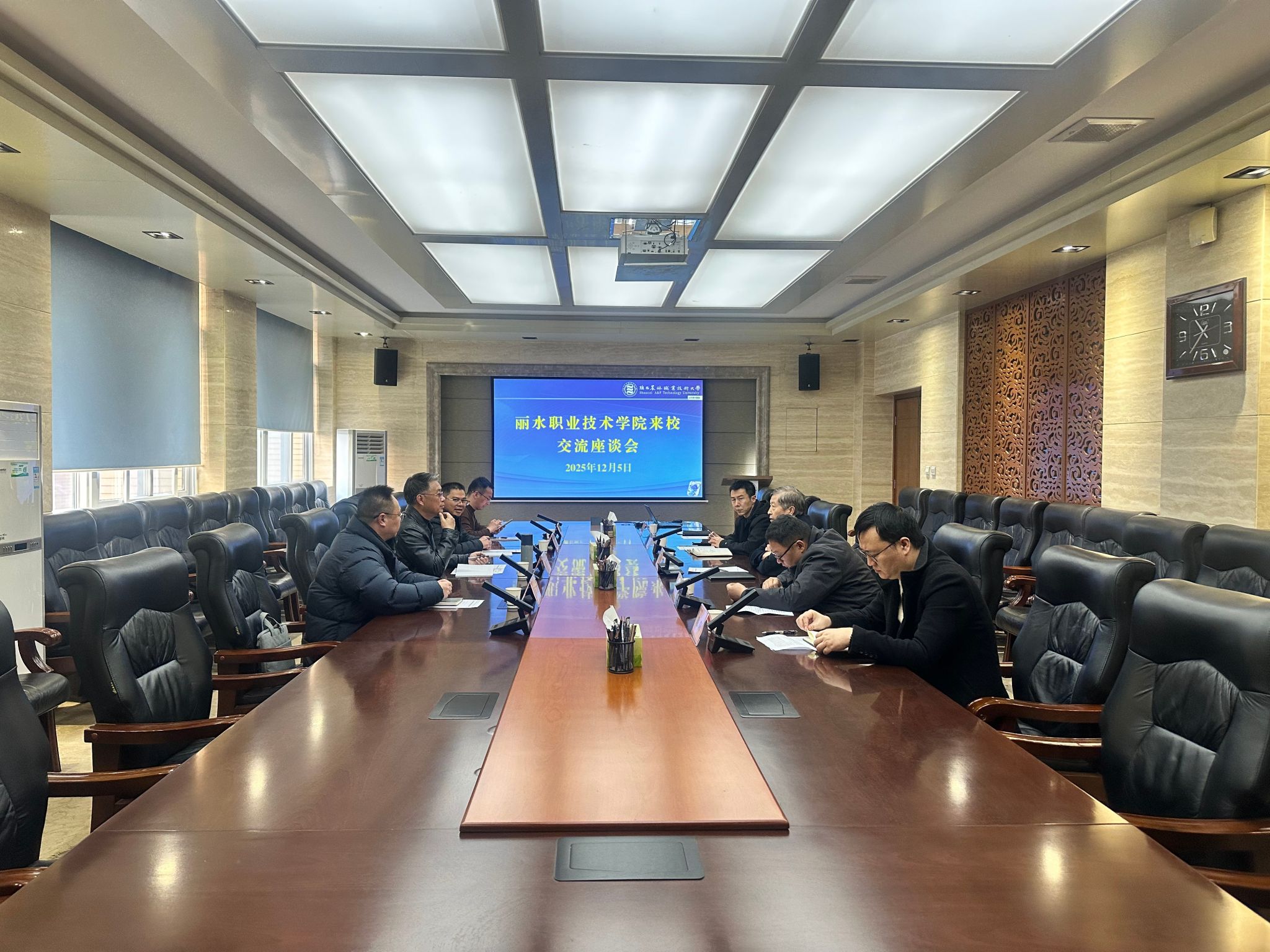 12月5日上午,丽水职业技术学院副校长张奇一行4人,围绕办学发展、升本创大、科研平台建设等工作来校考察交流。副校长祝战斌出席座谈会,发展规划处、科技与教育研究处、基建处相关负责人陪同。