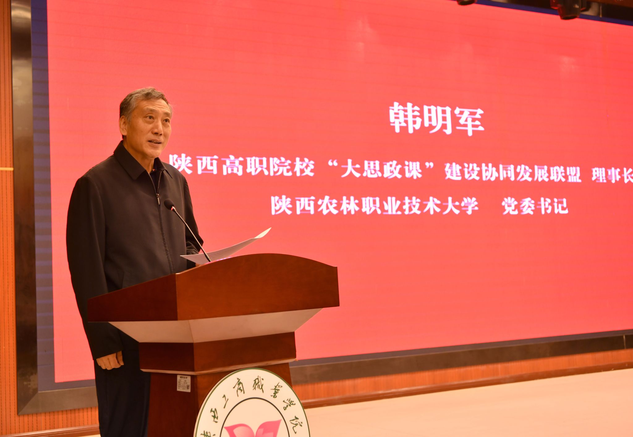 韩明军在讲话中指出,建设好陕西高职院校“大思政课”建设协同发展联盟,既是加快推进全国“大思政课”建设综合改革试验区陕西省试点建设的有力举措,也是推动全省高职院校进一步落实立德树人根本任务的现实需要。希望联盟坚持互学互鉴,推动共同提升;坚持共建共享,推动协同发展;坚持立足自身,推动守正创新,把思政课打造成铸魂育人的坚强阵地,为谱写陕西新篇、争做西部示范贡献思政力量与职教智慧。