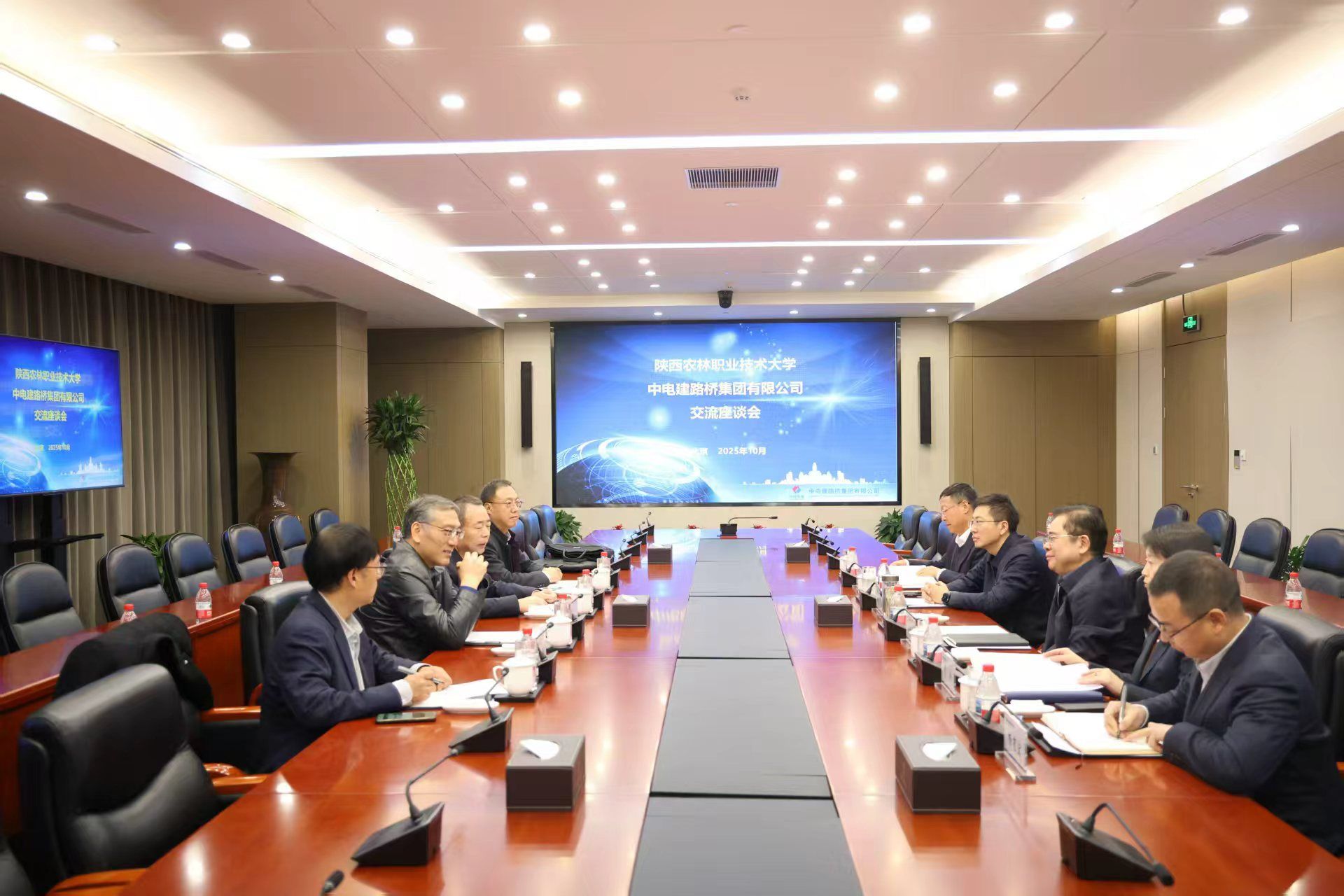 30日下午,考察组一行参观了中电建路桥集团有限公司展厅,深入了解企业发展历程以及产业前沿动态。座谈会上,韩明军表示,学校始终以服务国家战略为使命,扎根教育强国建设,致力于培养高素质创新型人才,希望双方能够在关键领域加强协同、实现突破,共同构建互利共赢的新格局。座谈会由中电建路桥集团有限公司党委书记、董事长周孝武主持。
