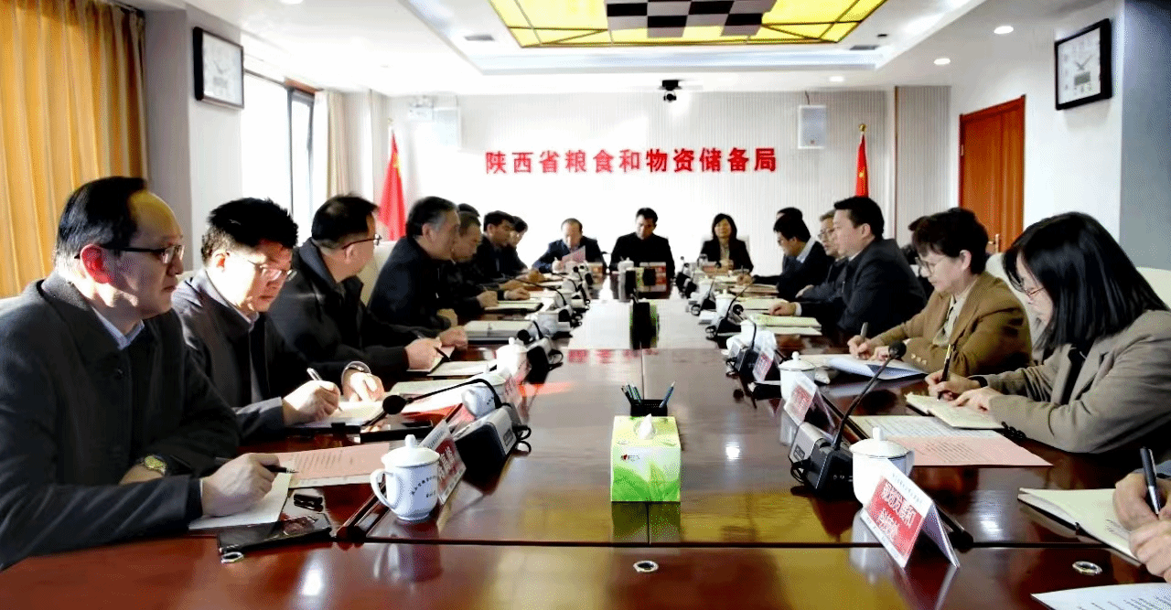 12月5日,党委书记韩明军、副校长胡俊鹏一行赴省粮食和物资储备局开展工作对接座谈。省发展改革委党组成员,省粮食和物资储备局党组书记、局长李育江,党组成员、副局长王晓霞,总工程师王志军出席座谈会。