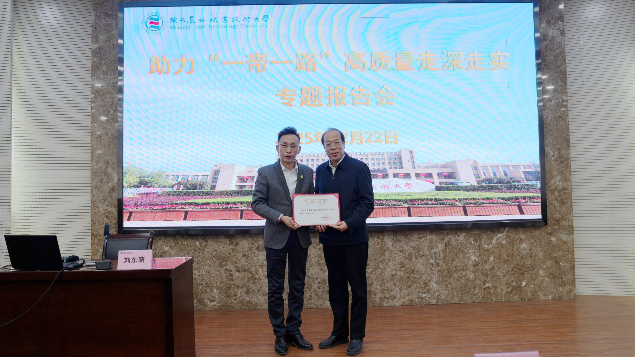 12月22日,学校举办助力“一带一路”高质量走深走实主题报告会,邀请西安爱菊粮油工业集团党委书记、副总经理刘东萌作专题报告。校长仲伟周,副校长胡俊鹏,以及各学院、相关部门负责人和教师代表110余人聆听报告。