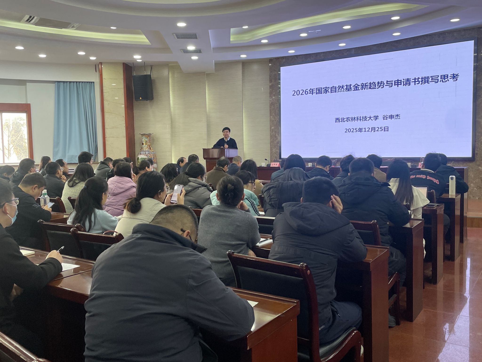 12月25日下午,学校召开2026年度国家自然科学基金项目申报启动会,邀请西北农林科技大学科研院基础科学研究处处长谷申杰作专题报告。校长仲伟周出席会议并讲话,副校长胡俊鹏主持会议。